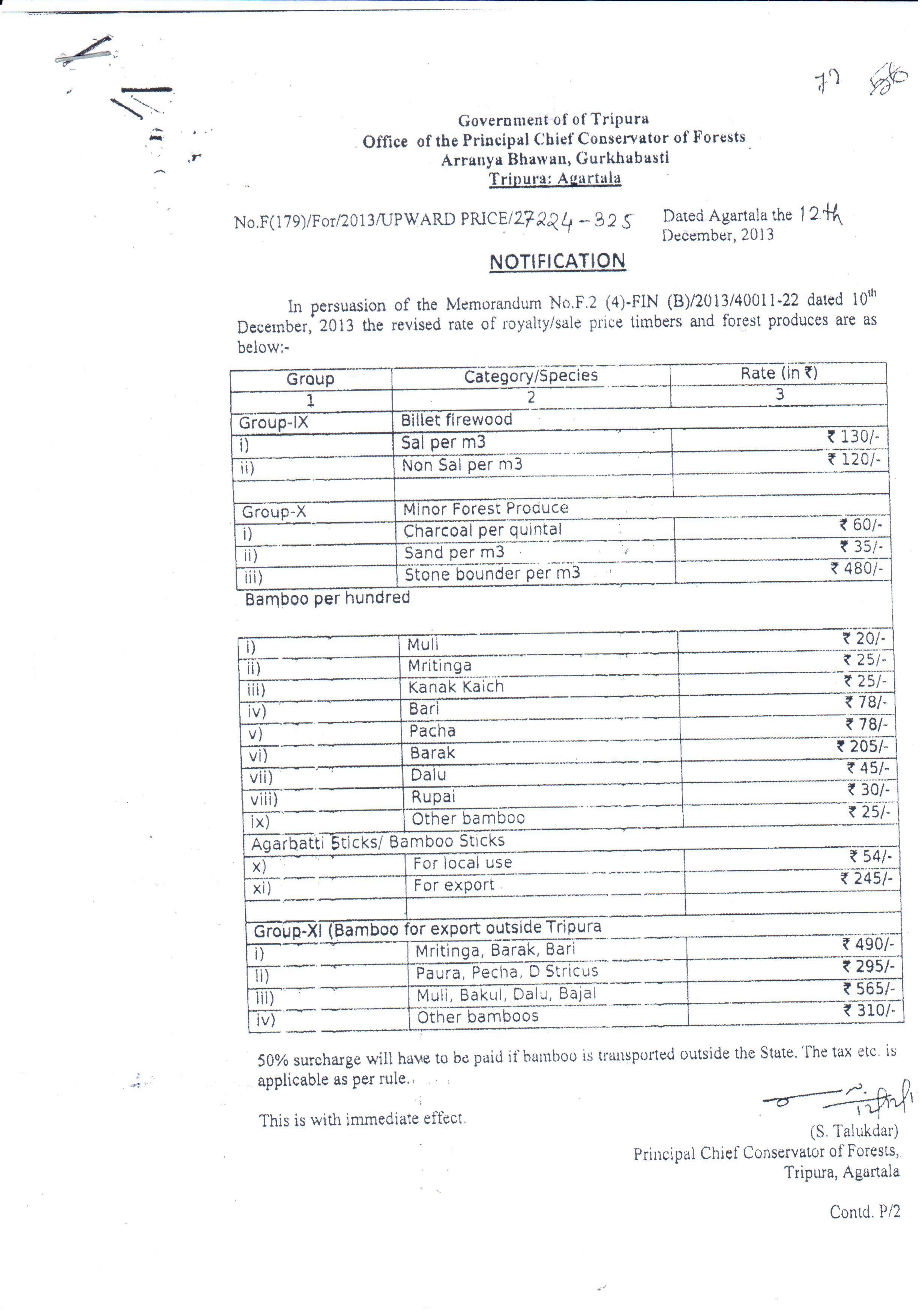 Notification for exemption of TP& GS for bamboo by Forest Department